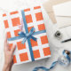 Kvadratlinjer - Höstpunktens Orange på vitt Presentpapper