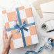 Kvadratpersikor och vit geometrisk retro presentpapper