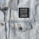 Skapat med en svart tavla som är utseendemässig med vit på en svart bakgrund på en kvadrerapinback, knäppas.