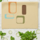 Kvadrerar modernt geometriskt långsträckt för Midcentury i retro färgintrig av bruntet, aqua, oliv och beigen. Underbar för vintage eller retro mitt- århundradekök eller pub.