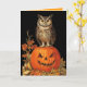 KVÄLL UGGLA PÅ HALLOWEEN PUMPKIN OCH HÖST LÖV KORT