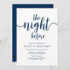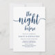 Natten innan, Rustic Navy Blue-skriptutformning.. Planerar man en bröllop-dagsljö firande med den blivande Briden och Groom, före deras högtid? Inbjudan gästerna med det här Perfekten, Bröllop Rehearsal Dinner-inbjudningskort. Lägg till information om repetitionsmiddagen i matchande teckensnitt/bokstäver. #TeeshaDerrick