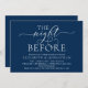 Modern romantisk kalligrafi, marinblå skrift, bröllopsinbjudan för middag för bröllopsrepetition (med korttitel: kvällen innan). Det är perfekt för er festliga middag för bröllopsrepetition, före er stora dag. Lägg till era detaljer i matchande svart typsnitt / bokstäver.