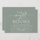 Modern romantisk kalligrafi, vit skrift, salvia grön bakgrund, bröllop inbjudningskort för middagsbjudning (med kortets titel: kvällen innan). Det är perfekt för er festliga middagsbjudning, dagen före er stora dag. Lägg till era detaljer i matchande svart teckensnitt / bokstäver.