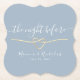 Enkel, minimal, elegant dammig blå Kvällen före Rehearsal middag pappersunderlägg med namnen på bruden och brudgummen, datum och modern kalligrafi skrift.