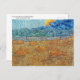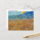 Ett konstkort med det post-impressionistiska måleriet av den holländska konstnären Vincent Van Gogh (1853-1890), Kvällslandskap med uppgående måne (1889). En nattlig scen av vete fälten med en ljus orange måne som stiger upp över kullarna.
