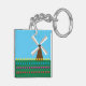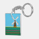 En kvarn mellan blåröda och rosa tulpanblommor i gulten. Den här designen ser ut att vara effektiv i den här nyckelkedjan