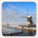 Papprare foto underlägg med en kvarn bredvid en liten flod i ljuset av en vintermorgon i kallet i ett landskap på den nederländska landsbygden med snö i Nederländerna.