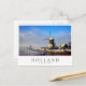 Fotovykort från en kvarn bredvid en liten flod i solljuset från en vintermorgon i kallet i ett nederländskt landskap med snö i Nederländerna med ett vitt kant och i en vit låda med rand i rött, vitt och blått, färg i den nederländska flagga, texten "Nederländerna, Nederländerna".