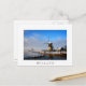 Fotovykort från en kvarn bredvid en liten flod i solljuset från en vintermorgon i kallet i ett nederländskt landskap med snö i Nederländerna med ett vitt gräns och texten "Holland".