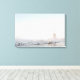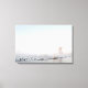 Landskapet Canvas i ett kvarn i snö bredvid en kanal under en dimmig soluppgång på vintern i Nederländerna