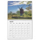 En kalender med 12 olika bilder av vindkraftverk