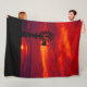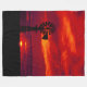 En silhuett av en kvarn mot en röd solnedgång himlar.