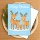 Sprid glädje med detta vismska handdragna julkort som ger en renfamilj som njuter av en snöpscen. Perfekt för familjer, barn och djur älskare som har mysigt festlig design.