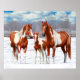 Kvarthästar av kastanjepaj i Sorrel-färg i Snö Poster