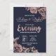Elegant, chic och enkel, modern faux-tryckt blommor och typografi från ro guld på modern marin blå bakgrund, inbjudningar till kvällsbröllop. Denna klassiska och sofistikerade utformning är perfekt för det trendig och det snyggt som gifter sig. Anpassa med ditt eget meddelande på framsidan och en anpassad inledande monogram på baksidan. All fotoutskriftsdesign.
