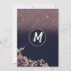 Elegant, chic och enkel modern faux-tryckt ro guld glitter, blommor och typografi på modern marin blå bakgrund, inbjudningar till kvällsbröllop. Denna klassiska och sofistikerade utformning är perfekt för det trendig och det snyggt som gifter sig. Anpassa med ditt eget meddelande på framsidan och en anpassad inledande monogram på baksidan. All fotoutskriftsdesign.