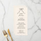 En vit möhippa-meny med ett vackert hand plockade-båge i en roligt och ett lekfullt stil, tillsammans med ett avslappnad, handskrivet teckensnitt i en neutralt-färg-schema av mörk grått på ecu. Den här menyn kan anpassas till gästernas namn.