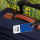 kvinna 1987 Tecknad Bok Logotyp Bagagebricka
