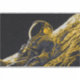 En digital illustration av en kvinna astronaut i en duoton konststil av blå och guld.
