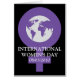 Purpurfärgad världskarta som omringas av venussymbolet för att föreställa internationell kvinna dag. Skräddarsy text- och bakgrundsfärg.