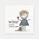 En söt pinne kvinna figur tjej med sin katt bär en blå denim klänning, pärlhalsband och sneakers och håller ett glas rött vin med en definition av vin text.