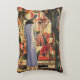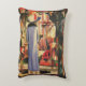 Kvinna framför ett köpfönster före augusti-maken prydnadskudde