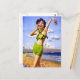 Kvinna i badkläder på stranden vykort
