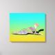 Abstrakten av en feminin figur på en strand på en solig dag. Digital konst.