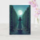 En ensam kvinna står i en månbelyst bana som gränsar till höga häckar och skapar en atmosfär av mystik och förtjusning. Inre text kan ändras.