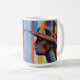 Kvinna i färgglad hatt slående siluett kaffemugg