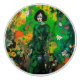 En AI-genererad målning av en kvinna i en grönt klänning som går genom en grönt