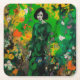 En AI-genererad målning av en kvinna i en grönt klänning som går genom en grönt