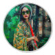 En AI-genererad porträtt av en kvinna med solglasögon av grönt