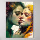 Kvinna i Kärlek Färgstark målning med blandade med Poster