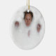 En kvinna bad i ett bad i mjölk. Och hon är lycklig. Så mycket lycklig.