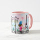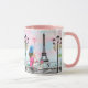 Muggar med Söt Woman and Rosa Heart Balloon - I Kärlek Paris - Eiffel Torn Romantic Teckning - Select / Add Your Unique Text / Font / Färg - make your Speciell Mugg Gift - Ändra storlek och flytta eller ta bort eller lägga till inslag - Bild / text med anpassning verktyg ! - Teckning och MJÖLKS utformning. Du kan också överföra mina designers till fler än 1 000 Zazzle-produkter. Njut - var Lycklig :)