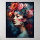 Kvinna med blomma Huvud Konsttryck Affisch