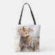 Vattenfärgsverk av en kvinna med en strand som tittar vid havet vatten.