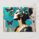Kvinna med fjärilar vykort