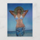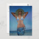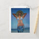 Kvinna med höft och sarong med glädjande sommartid vykort