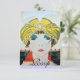 Vibrant, klassi Fransk Art Deco med mode med Monogram. Porträtt om en vacker ung elegant dam med gult, orientalisk hatt med fjädrar i svart vitt, gult, blått färg ..Coola, modern och konstnärlig partiinbjudan.