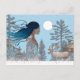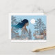 Kvinna med renar i snö genom loggstuga vykort