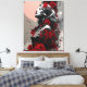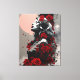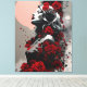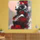 En underbar kvinna med röd ros AI skapade målning i minimalt färg av rött, svart, grått, och en antydan om rosa.