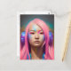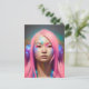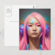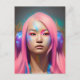 En kvinna med rosa hår och lila hörlurar AI skapade porträtt-målning