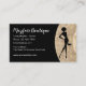 Damdräkt och designen för modeboutiquevisitkort med avbildar av ett posh, och den moderna modedamen med informationsfält som du kan byta ut med ditt eget, specificerar. Skapat för damer som beklär boutiquen, dräktlagret eller presentaffären.