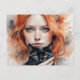 Kvinna och hennes svarta katt, Postkort, Postcrossing, Postkort, Postcrossare, kvinna, porträtt, akvarell, generativt innehåll, AI-generering, katt, djur postkort, svart katt