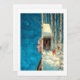 Kvinna och hjort i snöfågelskog per kabin julkort