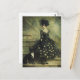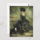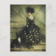 AI-genererad konst av en dam i svart klänning som poserar på trappan med sin svart-vita hund