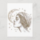 Kvinna och måne teckning vykort